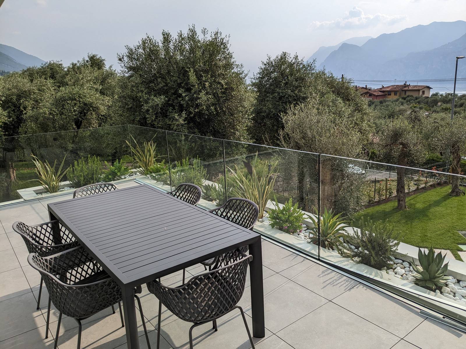 Terrazzo/Posto esterno con sedie con vista lago/giardino